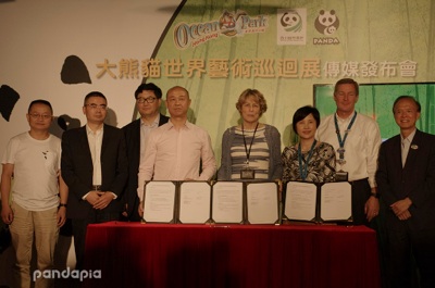 北京金尚龙影文化传播有限公司艺术总监张云晖、大熊猫全球艺术巡展艺术家代表、韩国三星爱宝乐园代表共同启动活动官网