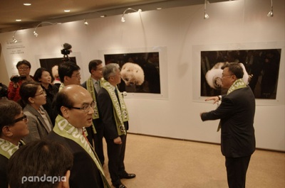 国家林业局保护司司长张希武,中国野生动物保护协会副秘书长李青文,四川省林业厅副巡视员唐代旭,四川省林业厅野保处处长王鸿加,成都市林业和园林管理局副局长罗叶,成都大熊猫繁育研究基地主任、张志和,联合国开发计划署助理国别主任、首席传播官张薇,北京自然博物馆馆长孟庆金等各单位领导出席了本次开幕式。知名音乐人黄小茂,知名音乐作曲人栾树,知名音乐作词人梁芒,知名歌手老狼,华谊兄弟公益基金负责人孙阿美、“联合国开发计划署熊猫明星使者”、“成都熊猫大使”袁姗姗,“有一天”合唱团,北京金尚龙影文化传播有限公司艺术总监张云晖,德国艺术家张奇开,中国艺术家田野等嘉宾约计50余人出席开幕式,并依次参观参观了展厅。