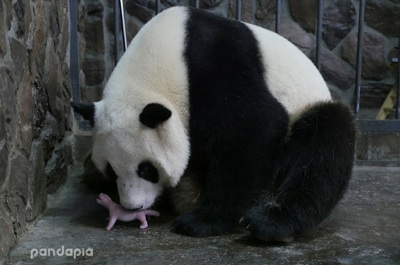 2014年8月,“爱浜”进入了首次全球大熊猫生产直播的镜头,但是经过48小时的直播,“爱浜”并没有生下宝宝,据成都熊猫基地动管部大熊猫专家吴孔菊说,“爱浜”的这种“似孕非孕”的现象,其实是雌性大熊猫中普遍存在的“假孕”。