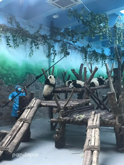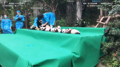 29日,成都大熊貓繁育研究基地為今年出生的10只新生大熊貓舉行了隆重的亮相活動。pandapia對本次亮相進行了現場直播。本次直播在國內兩大直播平臺,美拍,嗶哩嗶哩彈幕網同步進行,最高線上人數逾5.5萬人。